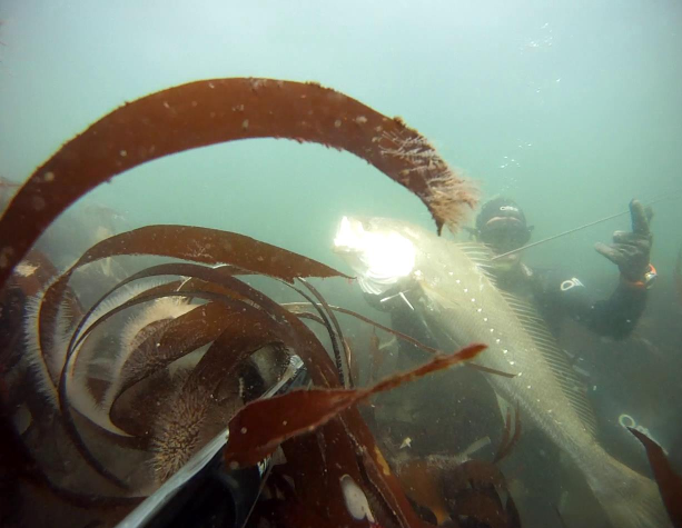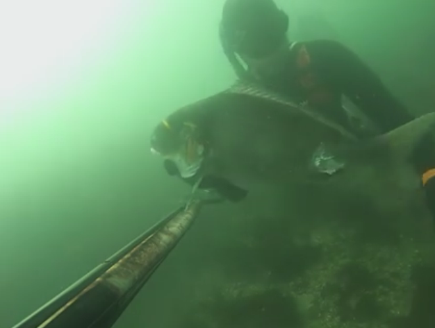 Chez nous le harpon en 75 cm est le plus utilisé car la visibilité est régulièrement très médiocre (2 mètres) J’utilise aussi des palmes IMERSION E-carbone et une combinaison IMERSION avec veste 7 mm et pantalon 5mm.