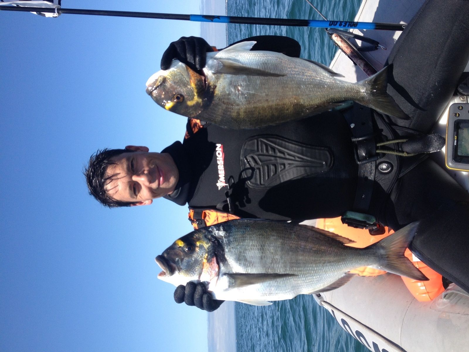 Autre souvenir, très marquant, le doublé de dorades royales de 3.7 Kg sur nos côtes.